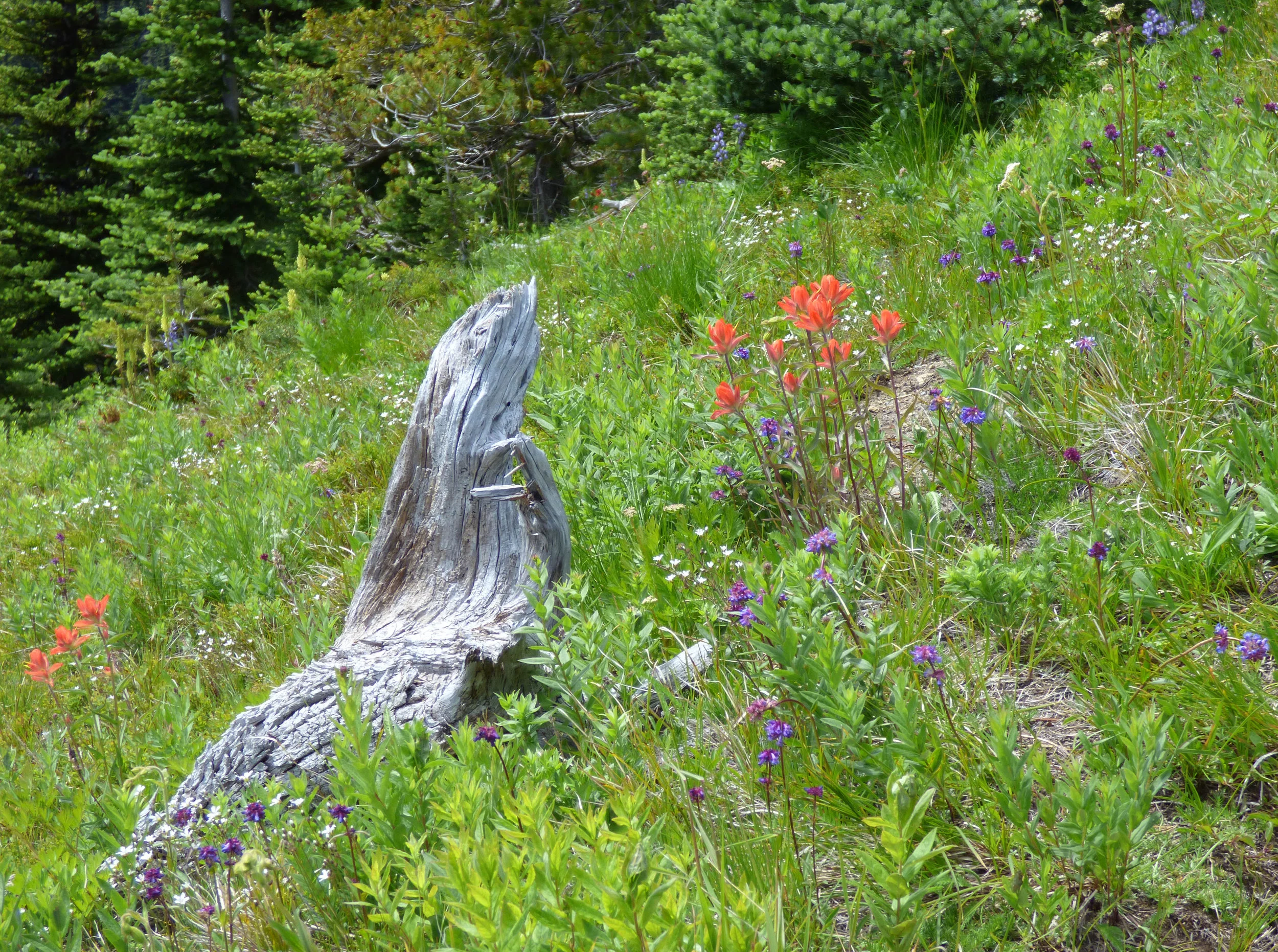 A week ago I had the opportunity to visit the Sunrise area of Mt. Rainier National Park. Many of the early flowers were blooming—the avalanche lilies are always first and they were already past their peak, but the next group was beginning—scarlet paintbrush, phlox, valerian, penstemon and beargrass.