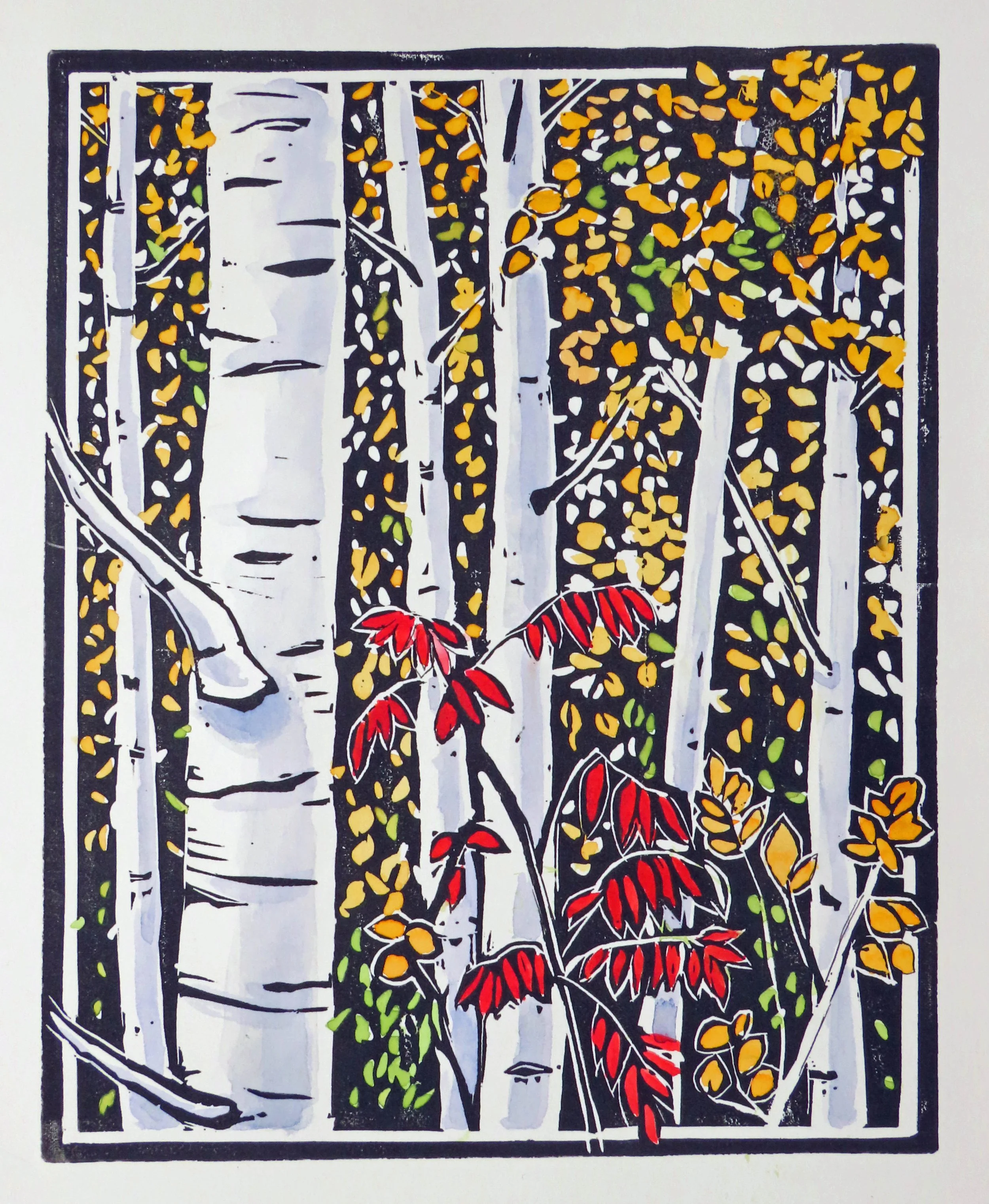 I’m putting up the Elisabeth C. Miller Library exhibit tomorrow morning, November 1st. The block print above, Sumac and Aspens, is one that will be in the show—it is going to be the cover image for the 2026 Pomegranate mini-calendar, aptly named Lush Landscapes. To see these growing side by side in a Yakima area canyon was an opulent sight indeed.